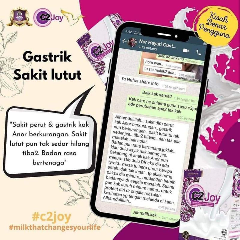 C2joy susu kesihatan terbaik haaa ada kelulusan kkm bukan sejenis ubat naa hanya yang sudah mencubanya saja tau macam mana ia berfungsi jom .